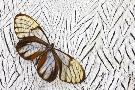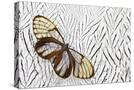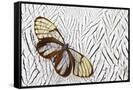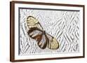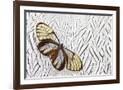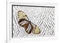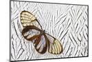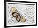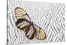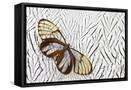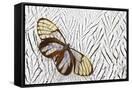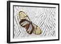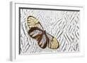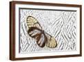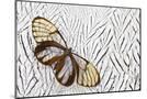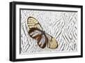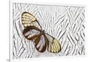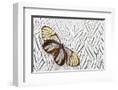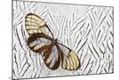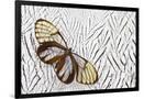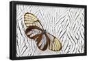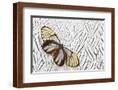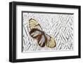 Glass-Wing Butterfly on Silver Pheasant Feather Pattern Photo Print