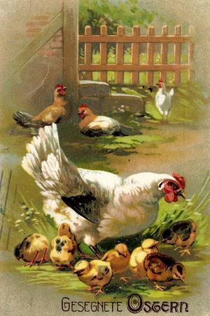 Glückwunsch Ostern, Henne Mit Ihren Küken