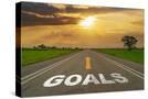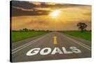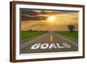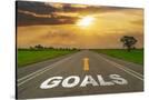 Goals on Highway Road of Empty Asphalt Road at Beautiful Sunset. Photo Print