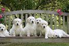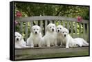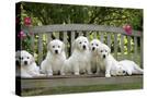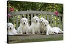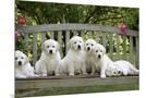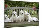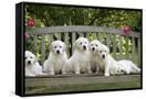 Golden Retriever Puppies on Garden Bench 7 Weeks
