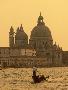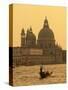 Gondola, Santa Maria Della Salute and Grand Canal at Sunset, Venice, Italy