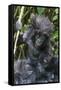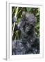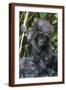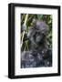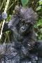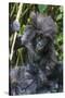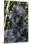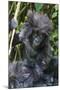 Gorilla mother with 6-month-old baby in the forest, Parc National des Volcans, Rwanda