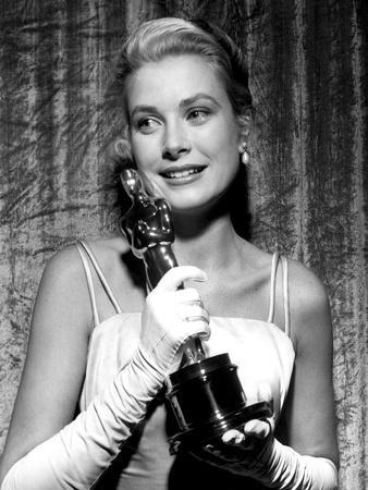 Grace Kelly with her Academy Award for COUNTRY GIRL, 3/30/55