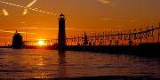 Grand Haven Lighthouse at Sunset, Grand Haven, Michigan, USA