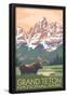 Grand Teton National Park - Moose and Mountains Canvas Wall Art