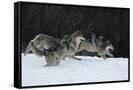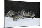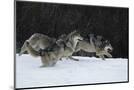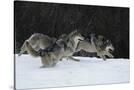 Gray Wolves Running in Snow in Winter, Montana Photo Print