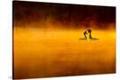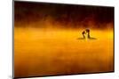 Great Crested Grebe (Podiceps Cristatus) Pair Performing Courtship Displaying at Dawn, Cheshire, UK