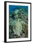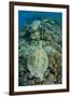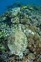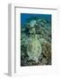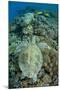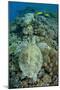 Green Sea Turtle (Chelonia mydas) adult, swimming over coral reef, near Komodo Island