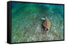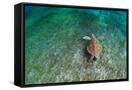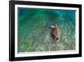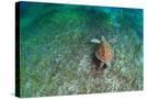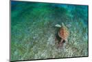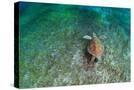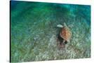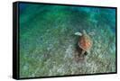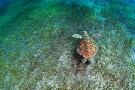 Green sea turtle swimming over Little Neptune grass on the seabed, Tenerife