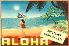 Aloha, Greetings from Hawaii, Hula Girl on Beach