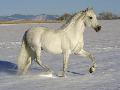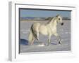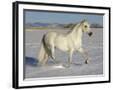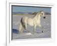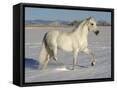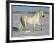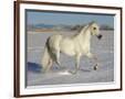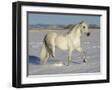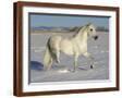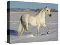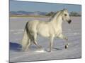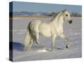 Grey Andalusian Stallion Trotting Through Snow, Colorado, USA
