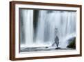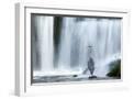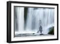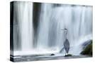 Grey Heron (Ardea Cinerea) Beneath Waterfall. Ambleside, Lake District, UK, November