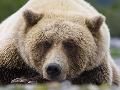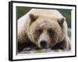 Grizzly Bear (Ursus arctos horribilis) adult, close-up of head, resting, Katmai