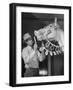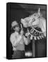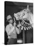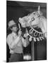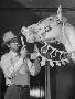 Groom Cleaning Horse's Teeth During Filming of the Movie "The Ziegfeld Follies"
