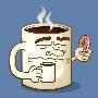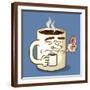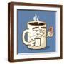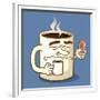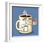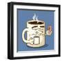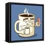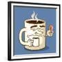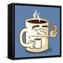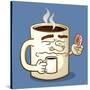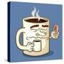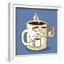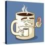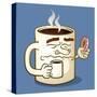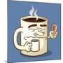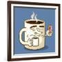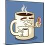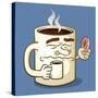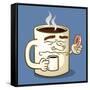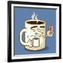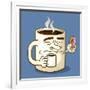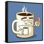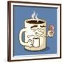 Grumpy Coffee Cartoon Character Eating A Donut Wall Art Print