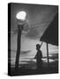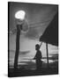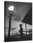 Guard Watching at Post, Searchlight Burning Through the Night to Help Scare Communist Raiders Away Photo Print