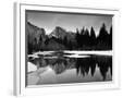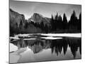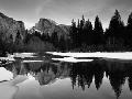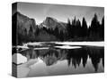 Half Dome Above River and Winter Snow, Yosemite National Park, California, USA