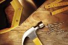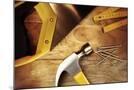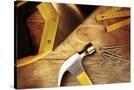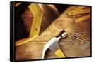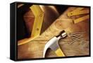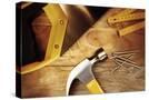 Hammer, Nails, Ruler and Saw on Wood Photo Print
