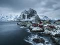 Hamnoy - Lofoten Islands, Norway Coastal Rocks and Mountains.