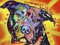 Happiness Is The Pits Sunray, Dogs, Pets, Pit Bull, red and yellow, Pop Art, Stencils, Motivational Giclee Wall Art