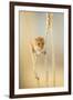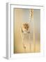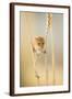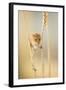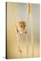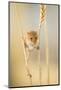 Harvest Mouse (Micromys Minutus) On Wheat Stem Feeding, Devon, UK, July. Captive