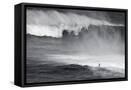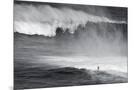 Hawaii, Maui. Lone Figure Surfing Monster Waves at Pe'Ahi Jaws, North Shore Maui