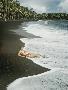 Hawaiian Airline Stewardes on Black Sand Beach, Kalapana, Hawaii