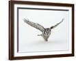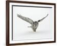 Hawk Owl in Flight over Snow Photo Print