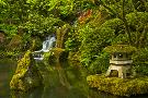 Heavenly Falls and Pagoda, Portland Japanese Garden, Oregon, Usa