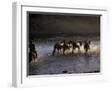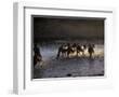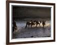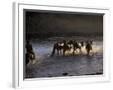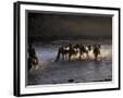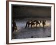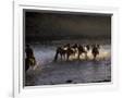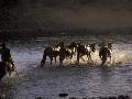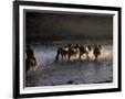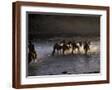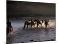 Herdsman and Horses Cross The Lake At Sunset, Great White Lake, Mongolia