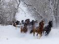 Hideout Ranch, Shell, Wyoming. Horse running through the snow. Photo Print