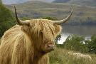 Highland Cattle Above Loch Katrine, Loch Lomond and Trossachs National Park, Stirling, Scotland, UK
