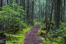 Hiking Path Winds Through Mossy Rainforest in Glacier National Park, Montana, USA