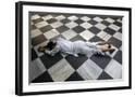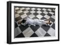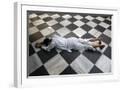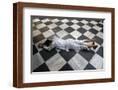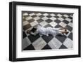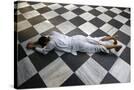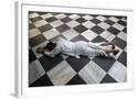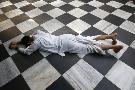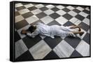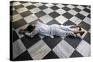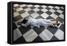 Hindu devotee prostrating at Krishna-Balaram temple, Vrindavan, Uttar Pradesh, India