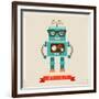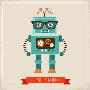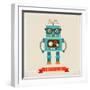 Hipster Robot Toy Icon And Illustration Wall Art Print
