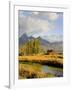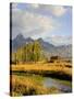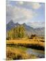 Historic Barn, Mormon Row and Teton Mountain Range, Grand Teton National Park, Wyoming, USA