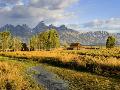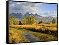 Historic Barn, Mormon Row and Teton Mountain Range, Grand Teton National Park, Wyoming, USA