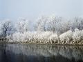Hoarfrost-covered trees along Mississippi River, Upper Mississippi National Wildlife Refuge, Wis...