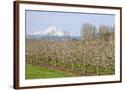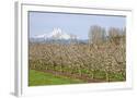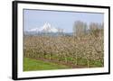 Hood River, Oregon, USA. Apple orchard in bloom with snow-covered Mount Hood in the background. Photo Print
