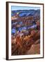 Hoodoos and Snowy Rim Cliffs Lit by Strong Late Afternoon Sun in Winter Photo Print