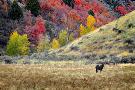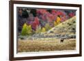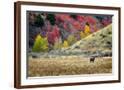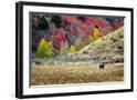 Horses Grazing in Valley of Autumn Aspen and Maple Trees Photo Print