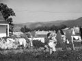 Housewife in Tygart Valley Removing Laundry from Clothesline, Her Young Daughter Stands Beside Her