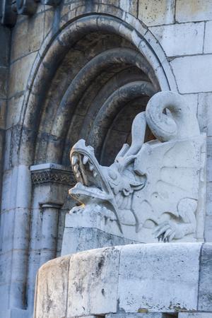 Hungary, Budapest. Dragon statue at Fisherman's Bastion building.