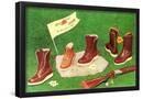 Hunting Boots and Shoes, Rifle Wall Art Print