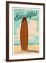 Huntington Beach, California - Surf Board Letterpress - Life is a Beautiful Ride Wall Art Print