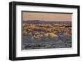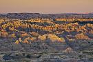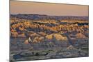 Illuminated Buttes, Sunrise, Pinnacles Viewpoint, Badlands National Park, South Dakota, Usa