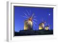 Illuminated Windmills of Chora, Patmos, Dodecanese, Greek Islands, Greece, Europe