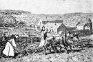 Illustration of Monks Plowing a Field