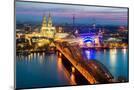 Image of Cologne with Cologne Cathedral during twilight blue hour in Germany Photo Print