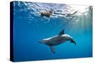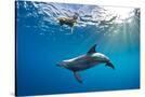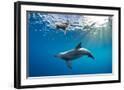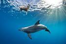Indian Ocean bottlenose dolphin swimming with dog, Egypt